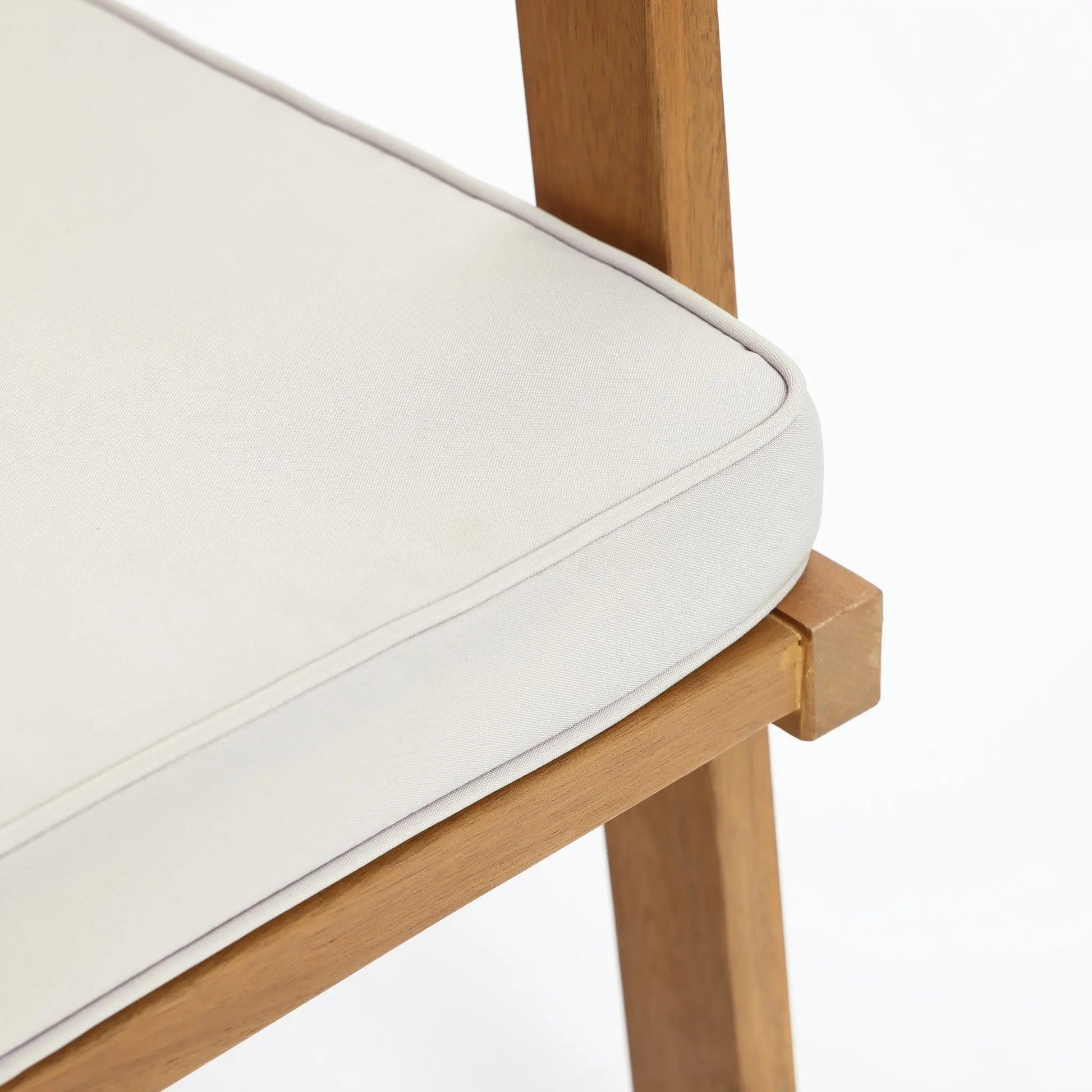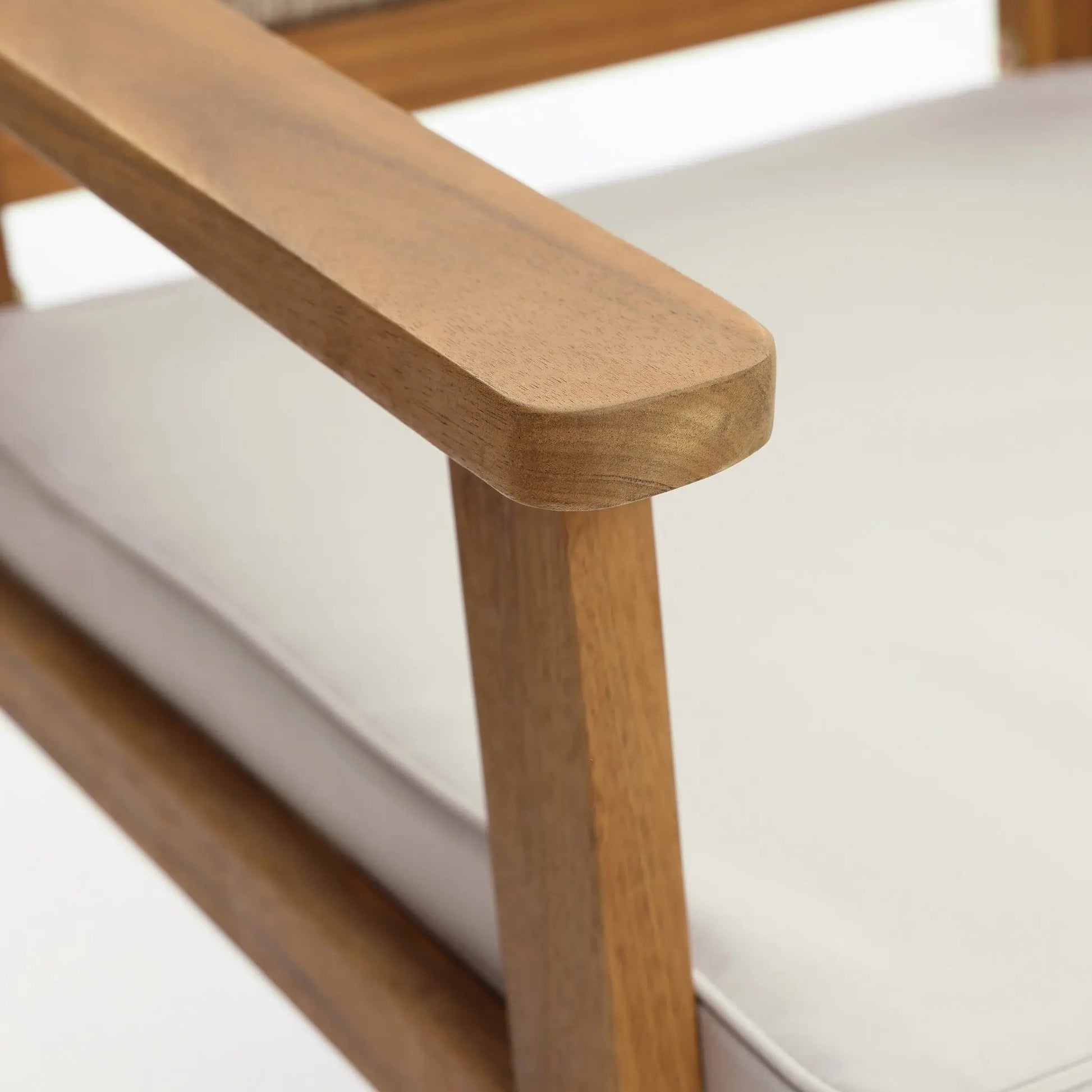 The Acacia wood frame offers strength and natural resistance to outdoor conditions. Rope backrests provide breathability, while the foam-filled cushions add comfort. Each wooden piece is treated with protective outdoor oil to help resist moisture and wear.